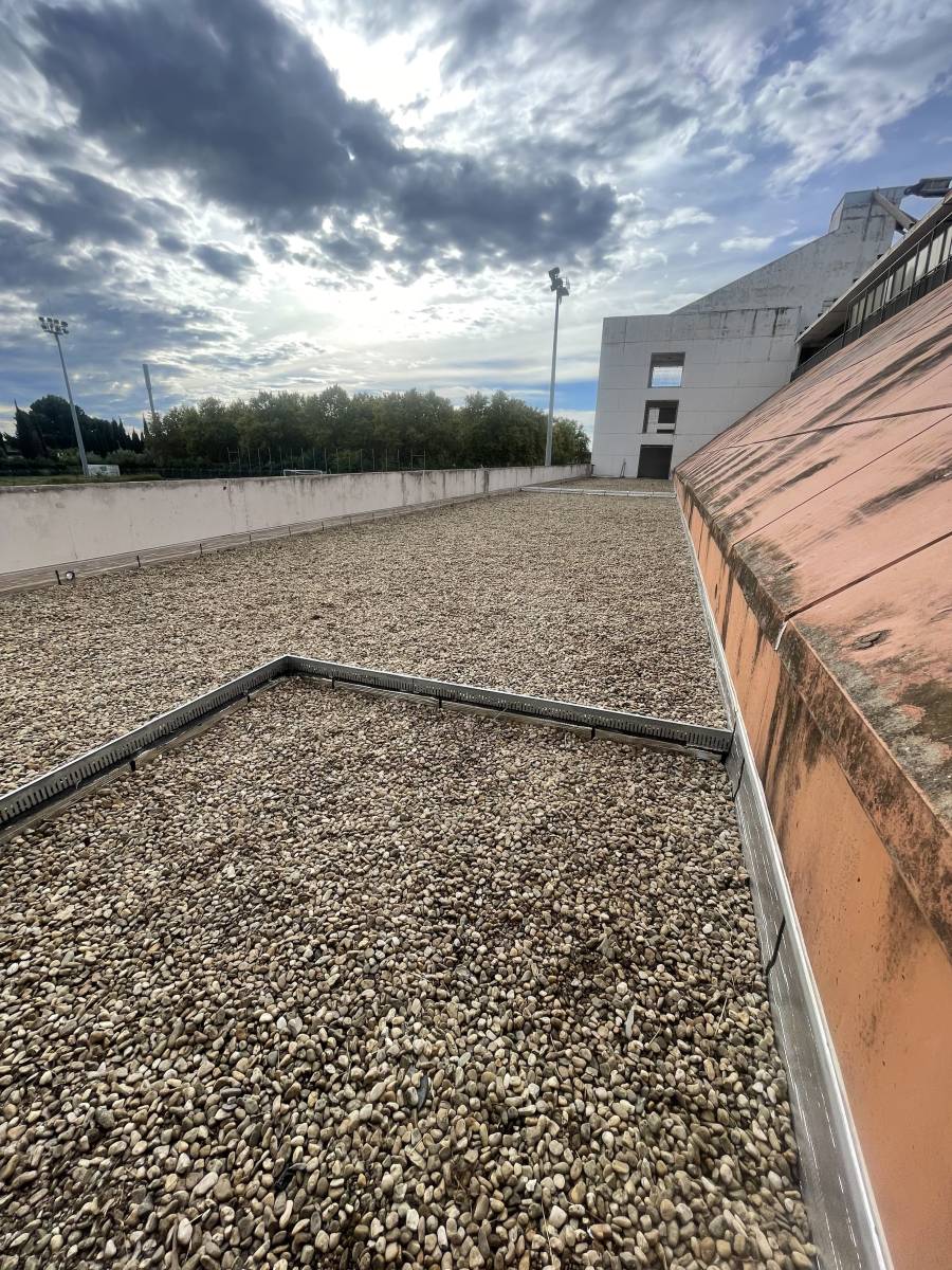 Au Stade des Costières, lieu emblématique de Nîmes, nous sommes intervenus pour rénover une toiture-terrasse de 300 m² affectée par l’usure et les infiltrations. Après une expertise détaillée, l’ancienne étanchéité a été retirée et le support soigneusement assaini afin de garantir une remise en état durable.